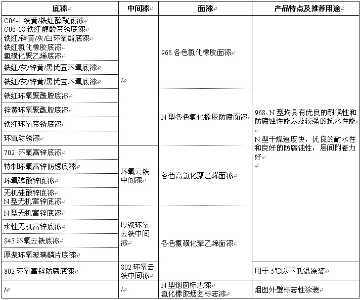 防腐漆常用產(chǎn)品配套 >> 底漆+中間漆+各色氯化聚烯烴面漆