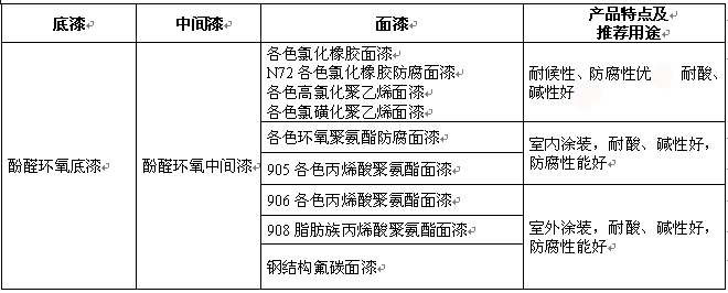防腐漆常用產(chǎn)品配套 >> 酚醛環(huán)氧底漆+中間漆+面漆