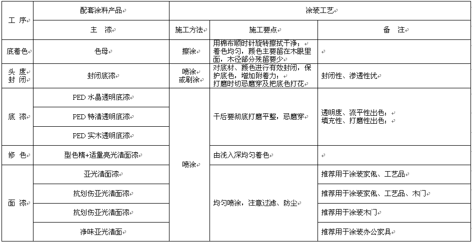 涂裝風(fēng)格:全封閉式涂裝         適用底材:實(shí)木板、貼木皮板、貼紙板           涂裝部件:家俬、工藝品、木門、辦公家具          涂裝環(huán)境:溫度:25℃、濕度:65%±5