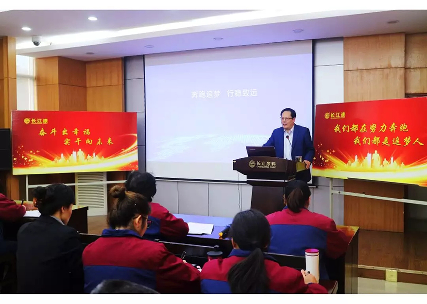 2019年是黨的十九大精神的貫徹落實之年,是新中國成立70周年,是決勝全面建成小康社會、實現(xiàn)第一個百年奮斗目標(biāo)的關(guān)鍵一年。站在新時代的關(guān)鍵節(jié)點上,1月18日下午,以“奔跑追夢 行穩(wěn)致遠(yuǎn)”為主題的2019年長江涂料奮斗目標(biāo)動員大會在公司報告廳成功召開。以匯聚起團(tuán)結(jié)奮斗、開拓進(jìn)取的強(qiáng)大力量,全面開啟長江涂料新征程的新篇章。