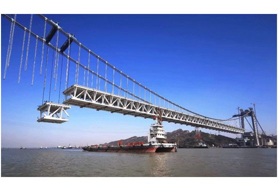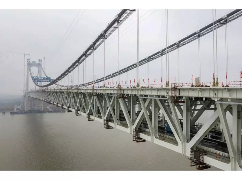 五峰山大橋造型美觀、結(jié)構(gòu)輕巧,是我國第一座公鐵兩用懸索橋,也是世界上跨度最大、運行速度最快、運行荷載最大的公鐵兩用鋼制懸索橋。
